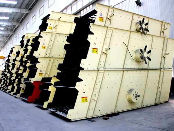 振动筛的作用主要是对于粗碎和细碎之间进行筛分,将不合格的物料再次返回进行加工,将合格的原料进入下一道加工工序。